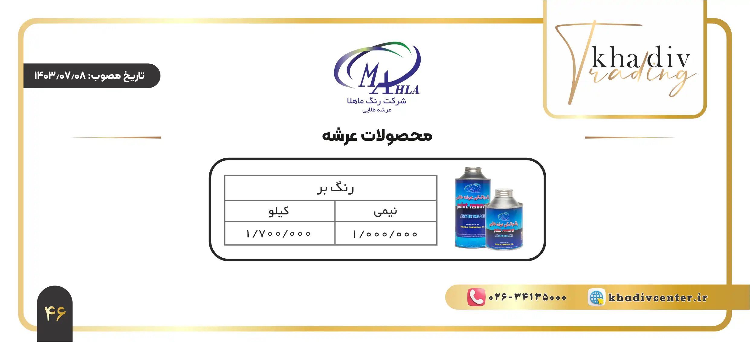 لیست قیمت رنگ بر عرشه – بازرگانی خدیو نماینده رسمی و عاملیت توزیع رنگ بر عرشه